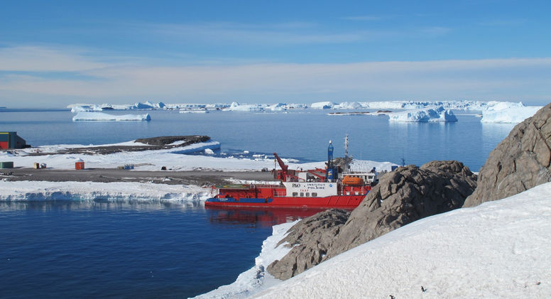 Photographies prises en été austral 2018, Péninsule Antarctique. Alors que Le Laurence Gould se rend en direction de la base américaine de Palmer, l'Almirante Irizar tente de passer l'épais pack de glace pour ravitailler, enfin, la base argentine d'Esperanza, à l'entrée du Détroit antarctique.