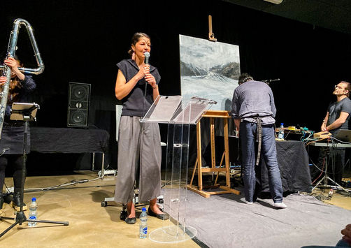 Résumé : A travers des textes mêlant sciences et poésie, immersion sonore aux inspirations minérales et peinture en direct, nous avons proposé une immersion dans les territoires du Grand Nord.